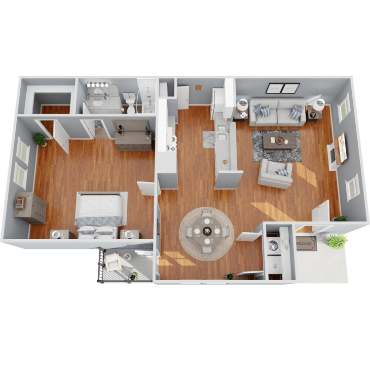 Choose from four fantastic floor plans at The Woods Apartments, including upgraded one and two-bedroom apartments for rent. Each has free reserved parking, central air and heating, and laundry connections, with washers and dryers available for rent. We feature desirable amenities, including balconies or patios, wood-burning fireplaces, extra storage, and large walk-in closets. Enjoy cooking in an all-electric kitchen with a breakfast bar; select homes also feature stone countertops.