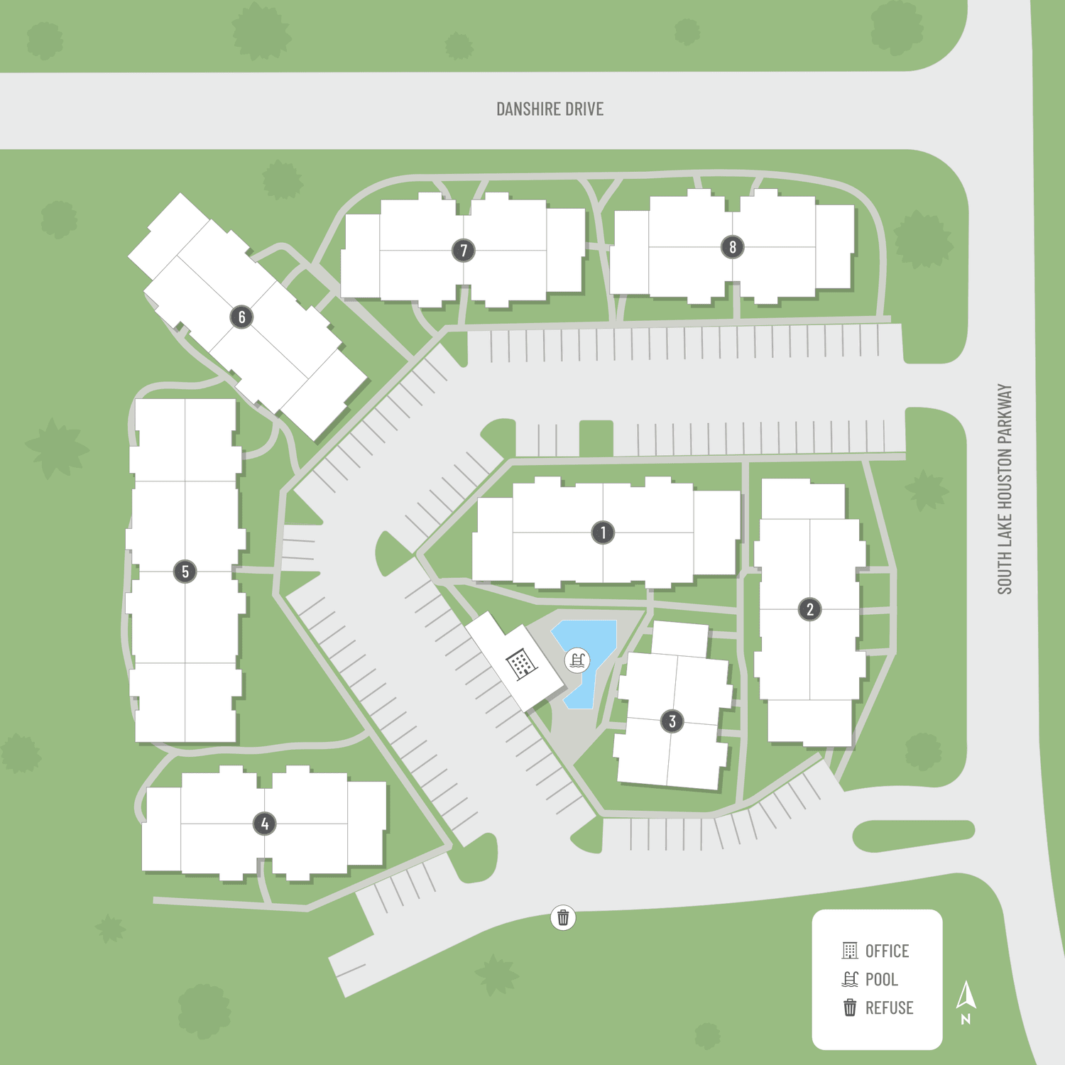 Select a floor plan or bedroom count to view those units on the overhead view on the site map. If you need assistance finding a unit in a specific location please call us at 281-458-5524 TTY: 711.